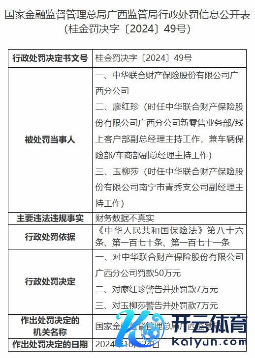 【大河财立方音讯】12月4日,国度金融监督处置总局广西监管局日前败露的行政处罚信息公开表线路,中华策划财产保障股份有限公司广西分公司因财务数据不真实世界杯体育,被国度金融监督处置总局广西监管局罚金50万元。